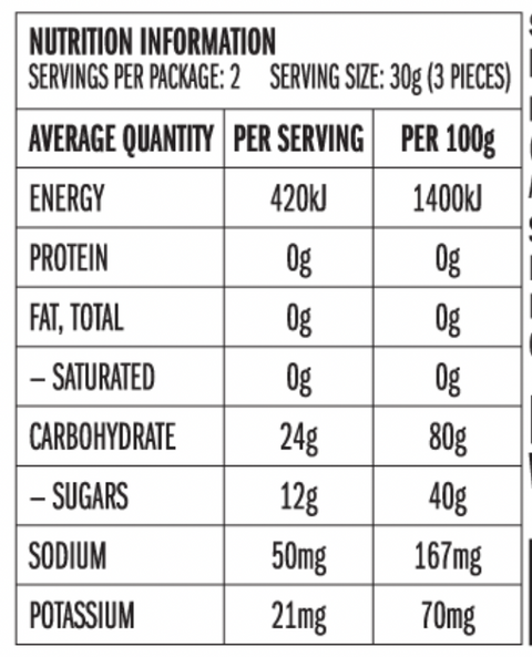 OrganicTapioca Syrup, Organic Dried Cane Syrup, Organic Maltodextrin, Pectin, Acidity Regulator (Citric Acid, Potassium Citrate), Natural Flavour, Black Carrot Juice Concentrate, Sea Salt, Organic Sunflower Oil, Glazing Agent (Carnauba Wax).Certified Organic by QAI.