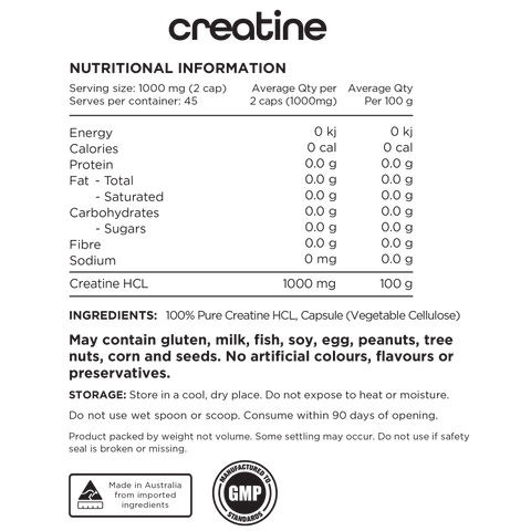 100% Pure Creatine HCL, Capsule (Vegetable Cellulose)