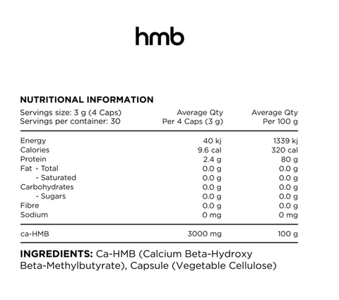 Consume 2 caps of HMB twice daily with food or around exercise timing, or as recommended by your health care provider.