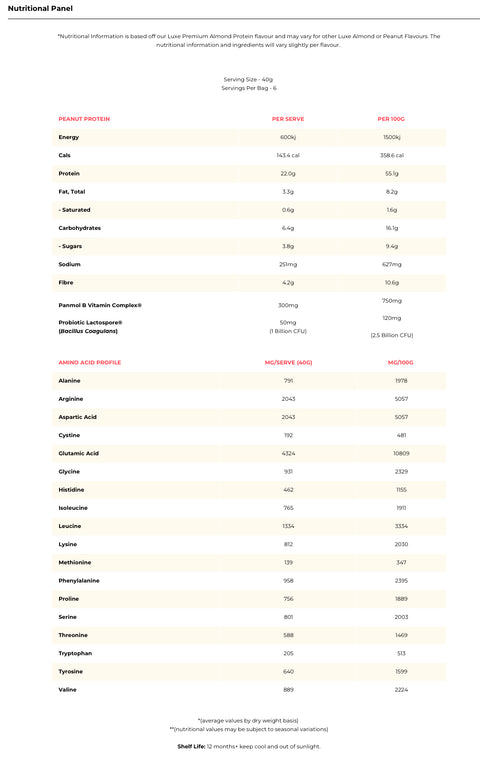 *Note our 2 Peanut Flavours contain Peanut Protein and our 4 non-Peanut Flavours only contain Almond Protein and Faba Bean Protein.