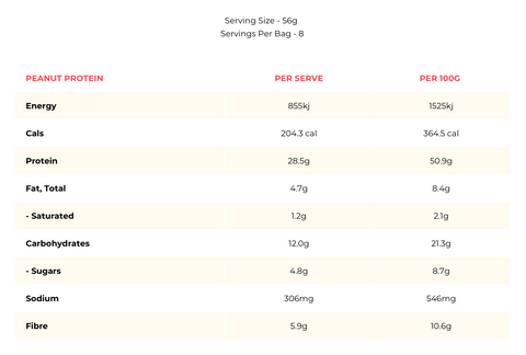 Ingredients: Peanut Protein, Faba Bean Protein, Pea Protein, Natural Flavours, Cocoa Powder, Sweet Potato Flour, Coconut Nectar, Vitamin & Mineral Premix (Calcium Phosphate, Sodium Phosphate, Magnesium Oxide, Ferric Pyrophosphate, Zinc Sulphate, Cupric Sulphate, Selenium Yeast, Chromium Chloride, Manganese Sulphate, Sodium Molybdate, Potassium Iodide, Ascorbic Acid, Retinol Acetate, Niacinamide, DL-Alpha-Tocopherol Acetate, Ergocalciferol, Cyanocobalamin, Pyridoxine Hydrochloride, Calcium D-Pantothenate, Riboflavin, Phytonadione, Thiamine Hydrochloride, Folic Acid, Biotin), Coconut Milk Powder, Himalayan Rock Salt, Guar Gum, Sweetener Blend (Stevia (Steviol Glycosides), Thaumatin), Probiotic Lactospore® (Bacillus Coagulans).