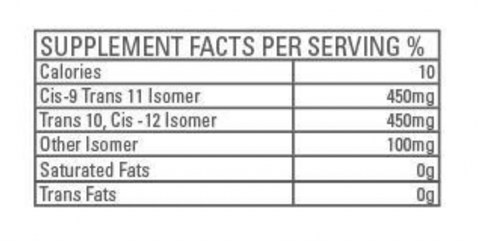 Safflower Oil Fatty Acids 1000mg, 800mg CONJUGATED LINOLEIC ACID (CLA) of which 750mg are the active isomers (c.9, t.11) and t.10, c.12) in equal ratio. Encapsulating aids.