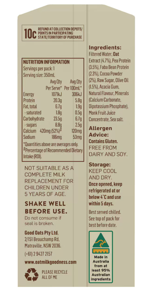 - Made with Australian-grown pea and faba bean protein and oats for quality nutrition