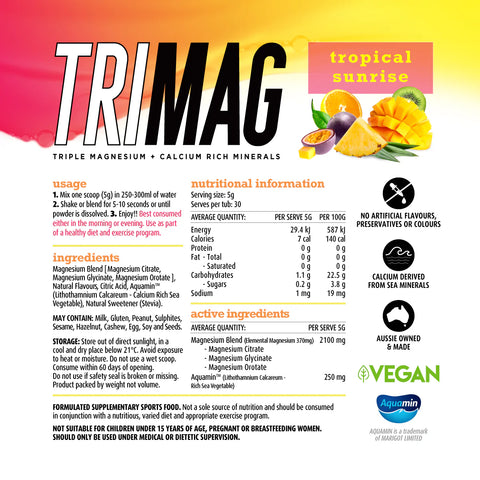 Magnesium Blend [Magnesium Citrate, Magnesium Glycinate, Magnesium Orotate], Natural Flavours, Citric Acid, Aquamin™ (Lithothamnium Calcareum - Calcium Rich Sea Vegetable), Natural Sweetener (Stevia).May Contain: Milk, Gluten, Peanut, Sulphites, Sesame, Hazelnut, Cashew, Egg, Soy and Seeds.